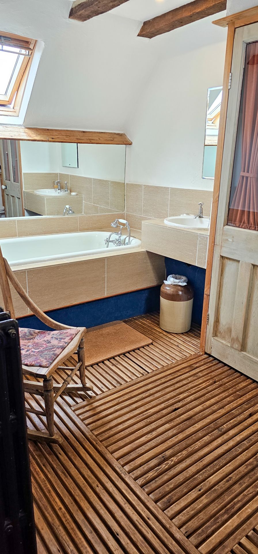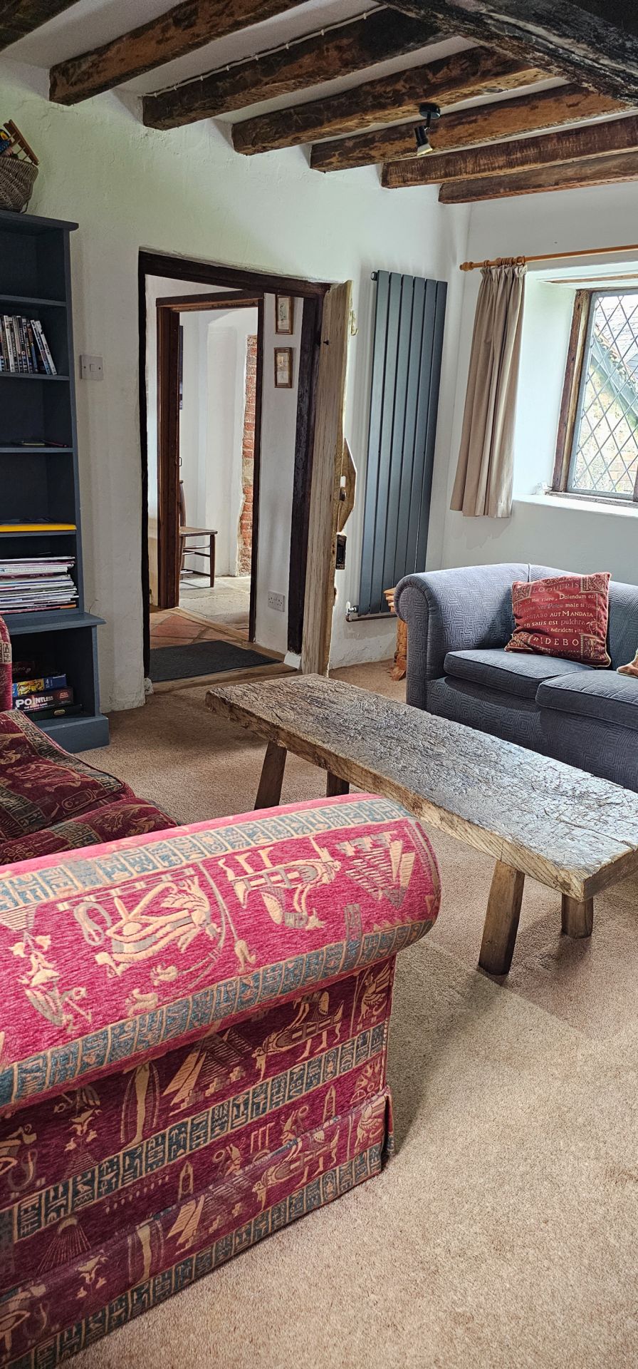 Away from the campsite, we have a lovely little old beamed cottage set in the farmyard overlooking a pretty pond. It has two stairways and a sleeping capacity of 6 adults and 2 children (depending on their age).