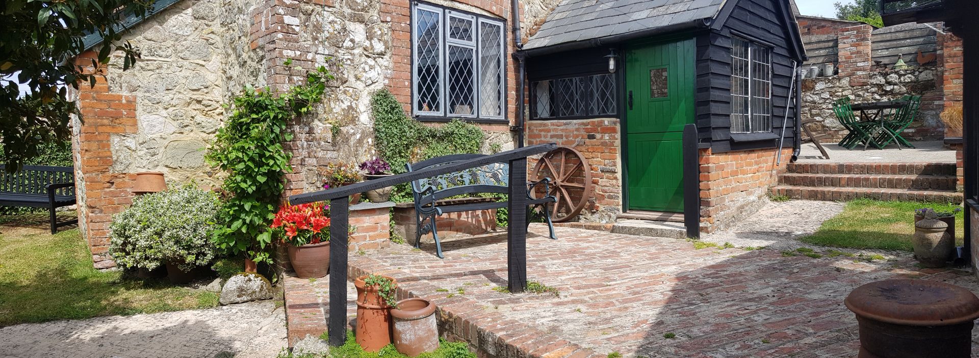 Suntrap garden, BBQ area with 2 car parking spaces right outside Cottage.